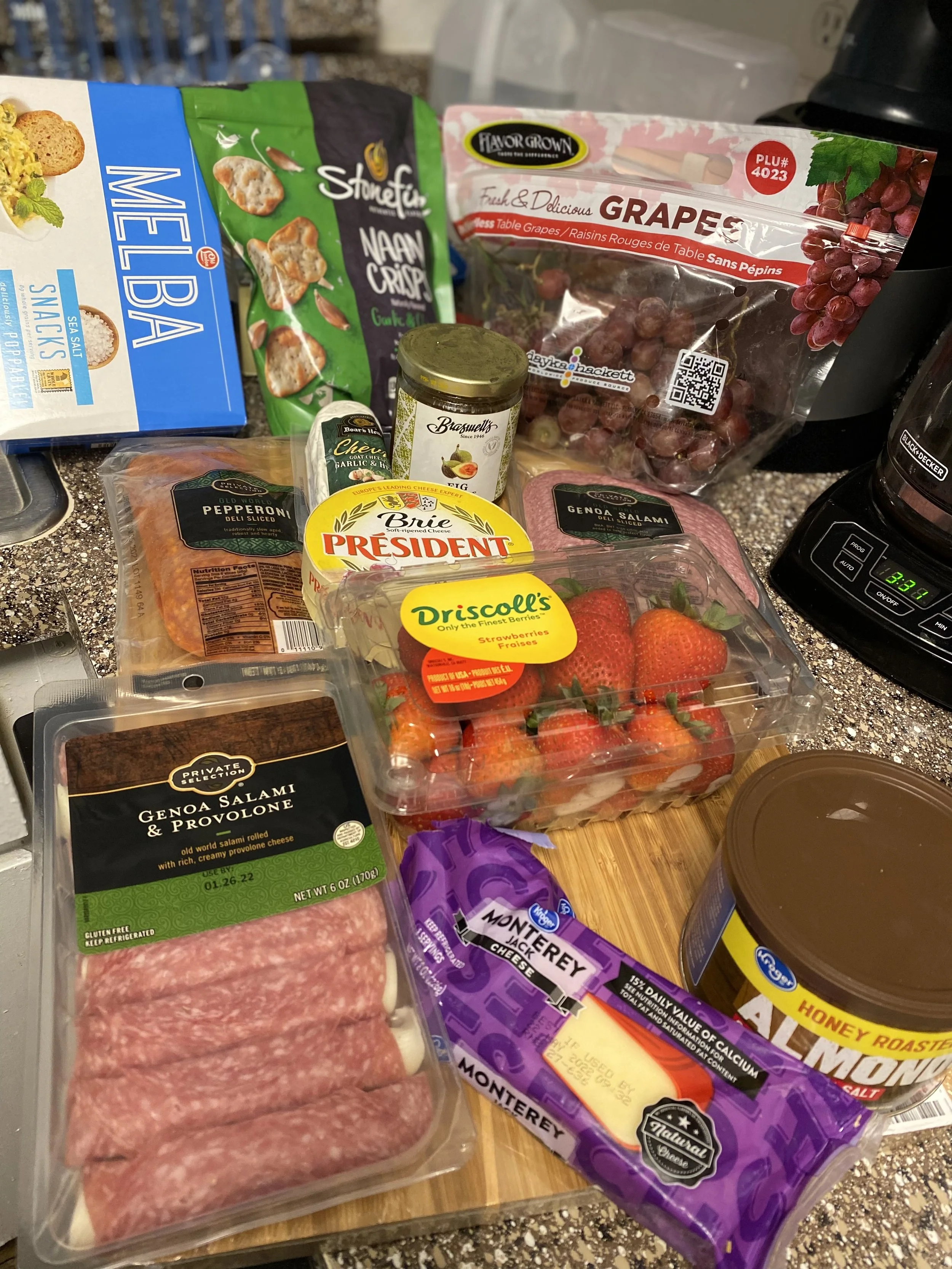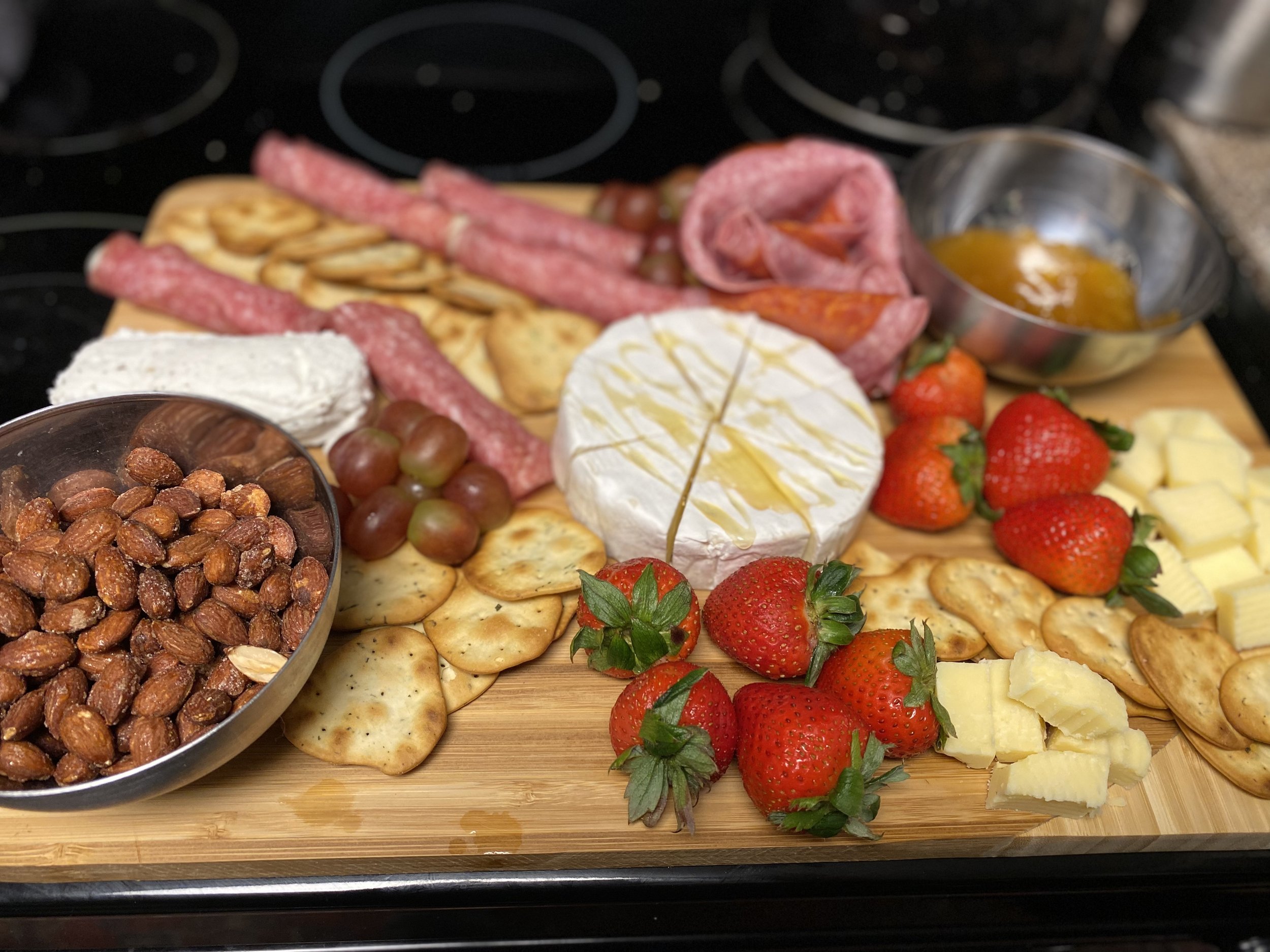 You can honestly put whatever you like on the board and arrange it however as well; there are no set rules. I got everything from Kroger and threw it on a board my boyfriend got me from Home Goods and it came out absolutely lovely.